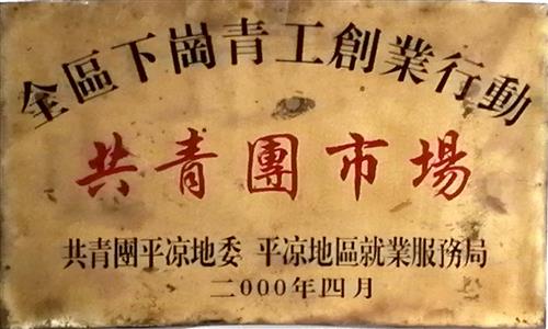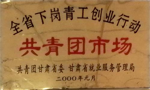 1999年被團(tuán)市、省地就業(yè)服務(wù)管理局分別授予“全省、全市下崗青工創(chuàng)業(yè)行動(dòng)共青團(tuán)市場(chǎng)”榮譽(yù)稱號(hào);