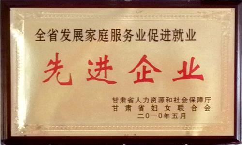 2010年5月公司被甘肅省人力資源和社會(huì)保障廳、甘肅省婦女聯(lián)合會(huì)評(píng)為“全省發(fā)展家庭服務(wù)業(yè)促進(jìn)就業(yè)先進(jìn)企業(yè)”;